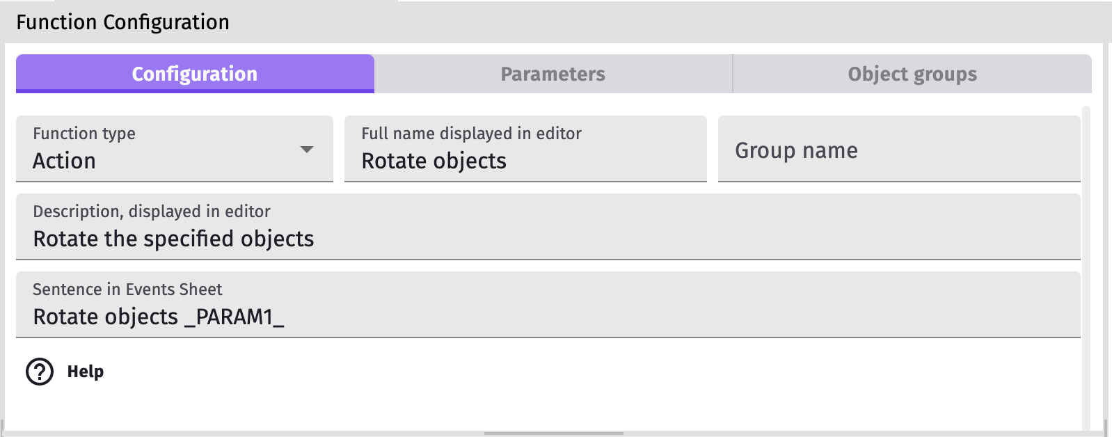 • Function type - actions and conditions can be used in events and expressions can be used in formulas.